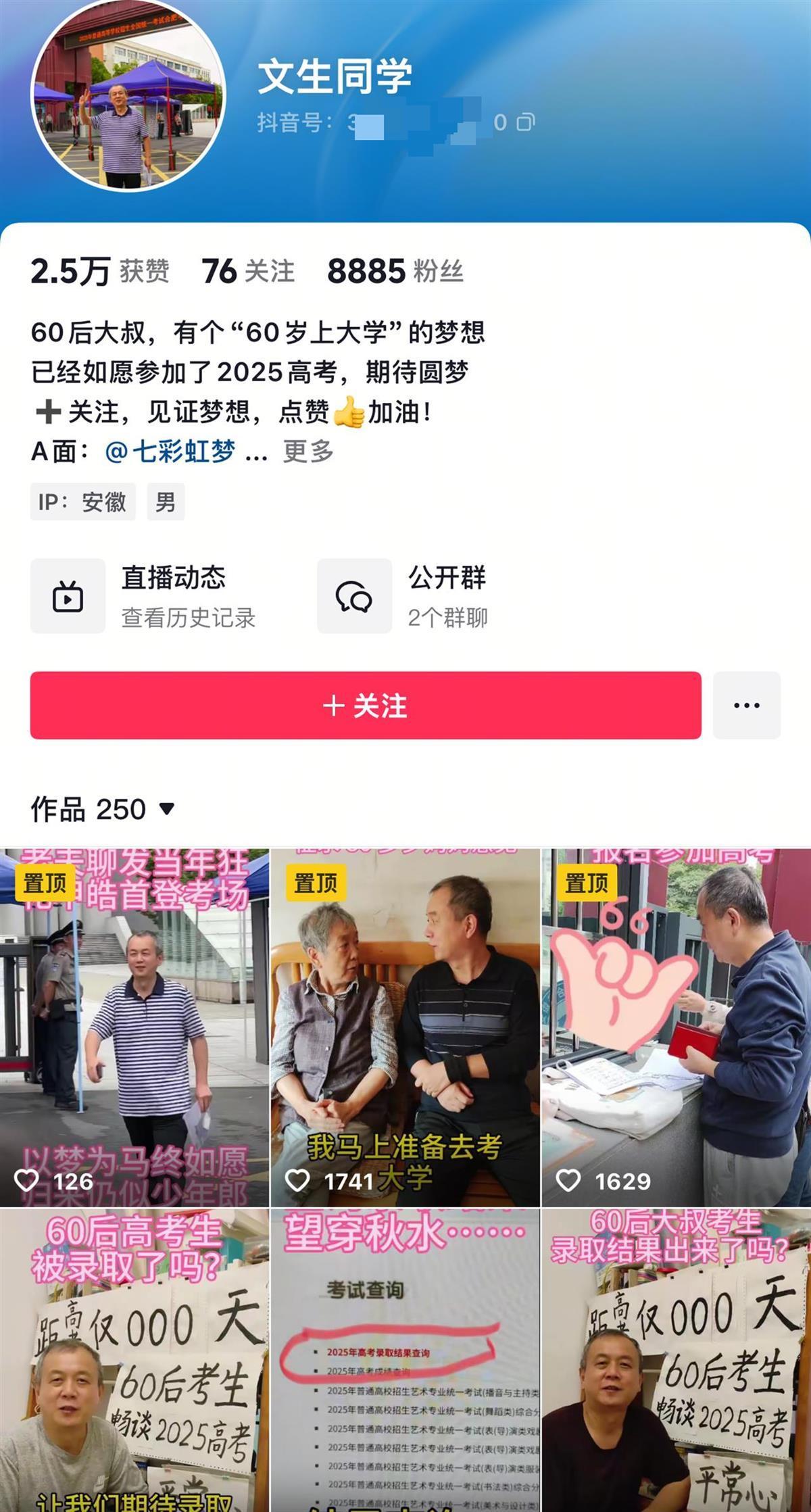 王文生2025年安徽高考录取查询结果显示,他被学校录取到网络营销与直播电商专业。为何选择如此“时髦”的专业?对此,王文生笑着说,本科院校没有该专业,他完成学业以后,也算这个专业的最高学历了。此外,这个专业学完以后,他在家就可以做相关的工作。