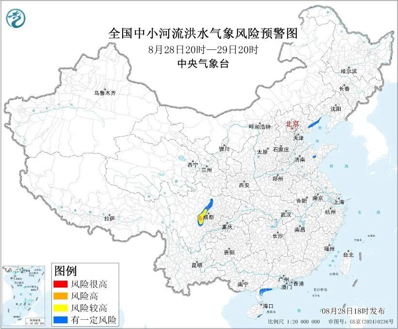 中央气象台8月28日18时发布中小河流洪水气象风险预警: