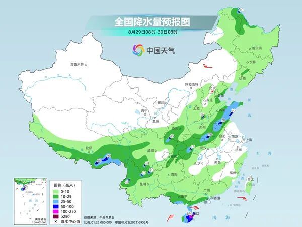 中央气象台预报,8月29日至31日,北方降雨将逐渐南落,其中华北、东北的雨会减弱减少,黄淮地区在今明两天出现明显降雨后,雨势也将收敛。在南方,未来几天降雨会逐渐增多,后天大部都将有雨,但雨势总体较弱,以小到中雨为主。另外,华南沿海今明两天仍将有强降雨,部分地区会有大暴雨。