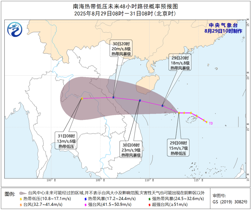预计,热带低压将以每小时15-20公里的速度向西偏北方向移动,强度逐渐增强,可能于今天加强为今年第14号台风,并向海南岛南部海面靠近。