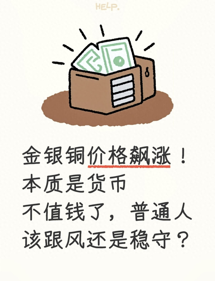 先说说“为什么涨价本质是货币贬值”。简单说,2024年以来,美国、欧洲、日本等主要经济体为了刺激经济,都在降息、印钱,市场上的钱变多了,而商品总量没怎么变,钱自然就不值钱了。比如以前100美元能买1盎司黄金,现在印了更多美元,可能需要120美元才能买1盎司,看起来是黄金涨价了,其实是美元贬值了。金银铜作为硬通货,自古以来就是保值的选择,大家担心手里的纸币贬值,就会买入这些资产,推高价格。但要注意,这波涨价已经持续了一段时间,现在入场风险已经升高,千万别想着“追高赚快钱”,很可能高位被套。